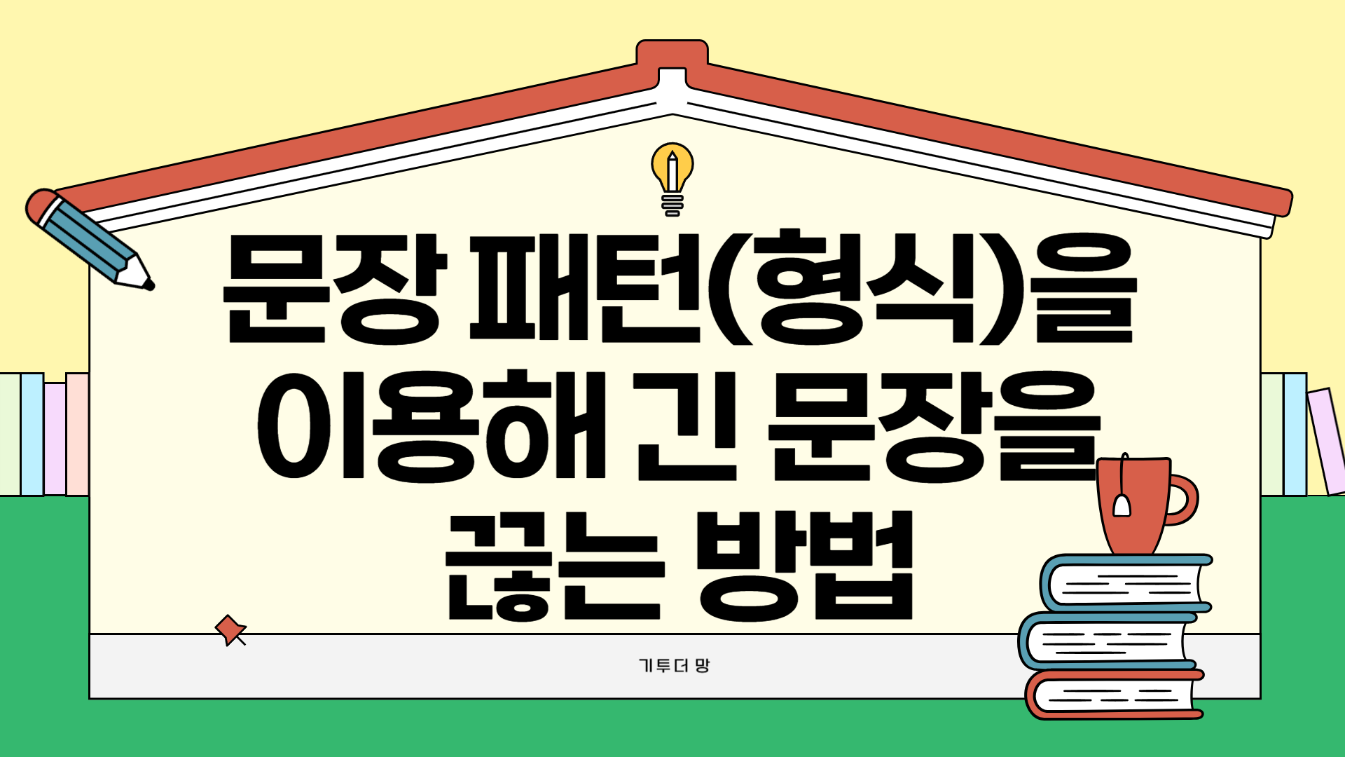 문장 패턴(형식)을 이용해 긴 문장을 끊는 방법은 영어 문장이 기본적으로 갖는 1~5형식 구조(주어, 동사, 목적어, 보어 등)를 활용해, 의미 단위별로 문장을 나누어 읽고 해석하는 것입니다. 아래에 구체적인 방법과 예시를 정리합니다.